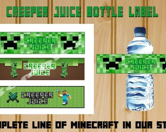 Creeper Juice Bottle Label, Minecraft Water Bottle Label, Minecraft Water Label, Creeper Label ...