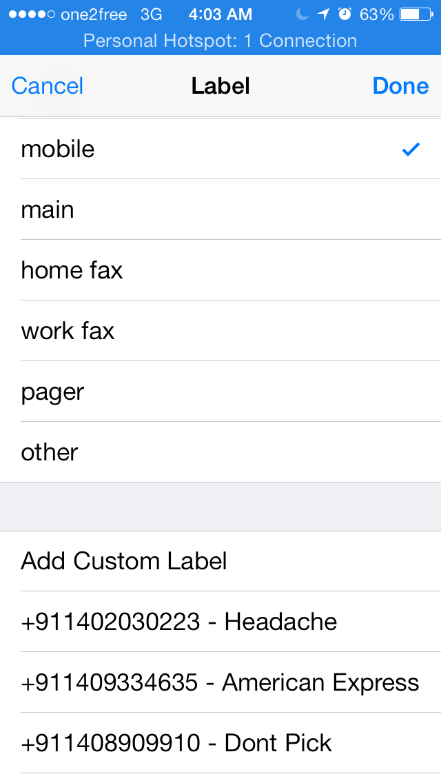 Why is there no custom labels for contacts phone numbers? Based on my test, there is no custom label I can create and add it to my contacts no matter which app I use. Please let me know how you create the custom label for your contacts. 4. Regarding these different phone numbers, may I confirm if they are the local phone numbers on your iPhone or those contacts belong to your account? Thanks, Lance