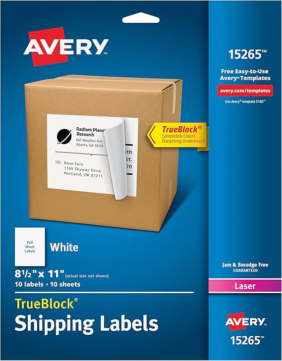 Amazon.com: Avery Shipping Labels for Laser Printers, 8.5 x 11 Inch, White, Box of 100 (5165 ...