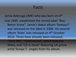 Through The Great Vine - Blogger On the same day Drake announced via his social media accounts that he had just signed with UK Grime record label BBK.. Chris brown Features Section Boyz on his latest mix tape (2016) On April 29th 2016, Chris brown released hit latest mix tape "OHB: Before Trap Nights". Song released on the mix tape which features Grime collective Section Boyz ... WEAREBLK - Sony Music UK WEAREBLK entered into a joint venture partnership with Sony Music Entertainment in November 2020. The label is focused on signing and developing artists ... Grime: struggle and commercial success — A Better Break Stormzy released the album through his own grassroots record label #Merky Records, later achieving its aim and becoming the first No.1 independent grime album in UK chart history. This led Stormzy to new heights of success winning two BRIT Awards; best British male and best British album for Gang Signs & Prayer.